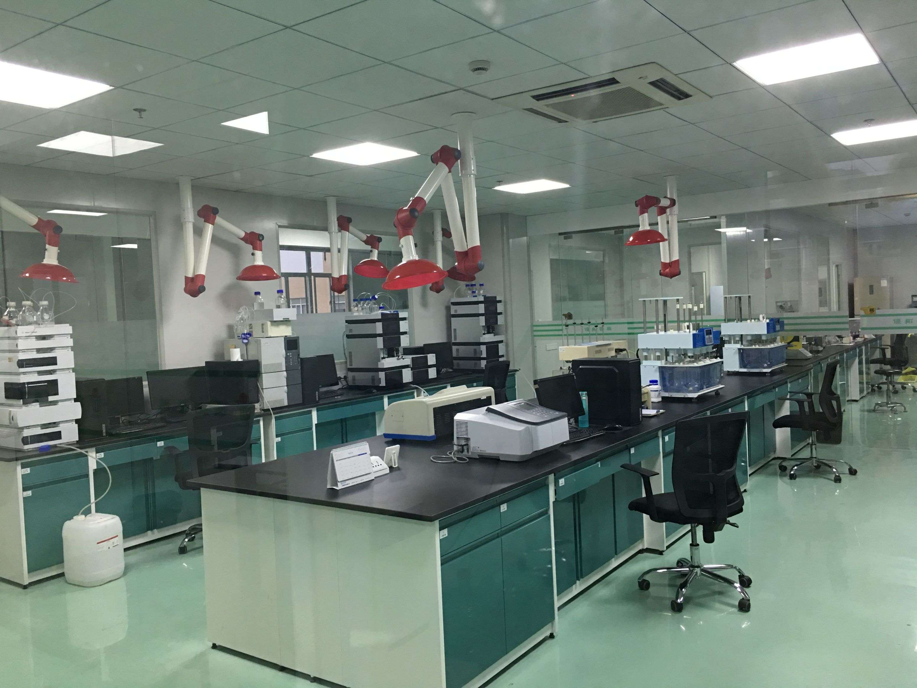 分析實驗室配備了液質聯用儀,帶有二極管陣列檢測器,紫外檢測器,蒸發散射光檢測器和示差折光檢測器的安捷倫、島津和Thermo高效液相色譜,帶頂空進樣和自動直接進樣器,配備氫火焰離子檢測器和熱導檢測器的氣相色譜,旋光儀,熔點儀,梅特勒托利多高精度電子天平,紫外分析儀,瑞士萬通自動電位滴定儀,瑞士萬通卡爾費休水分測定儀等先進儀器設備,可進行藥物研發所需的色譜分析與理化檢測。